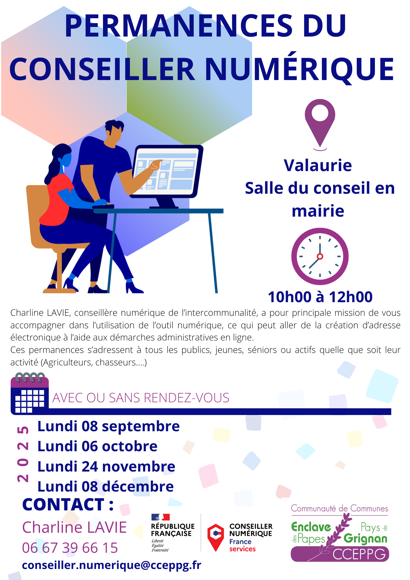Elles auront lieu les lundis 8 septembre, 6 octobre, 24 novembre et 8 décembre de 10h à 12h à la salle du conseil à la mairie de Valaurie, avec ou sans rendez-vous.