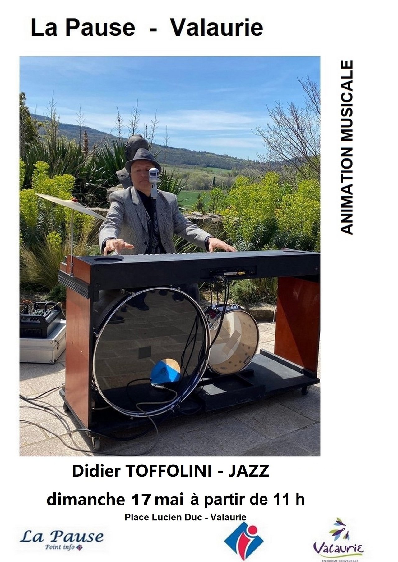 La Pause organise un moment de convivialité sur sa terrasse, Place Lucien Duc, le dimanche 17 mai à partir de 11 h en musique avec Didier Toffolini, homme orchestre (Jazz New Orleans). Vous pourrez chanter avec lui et/ou danser sur la place.